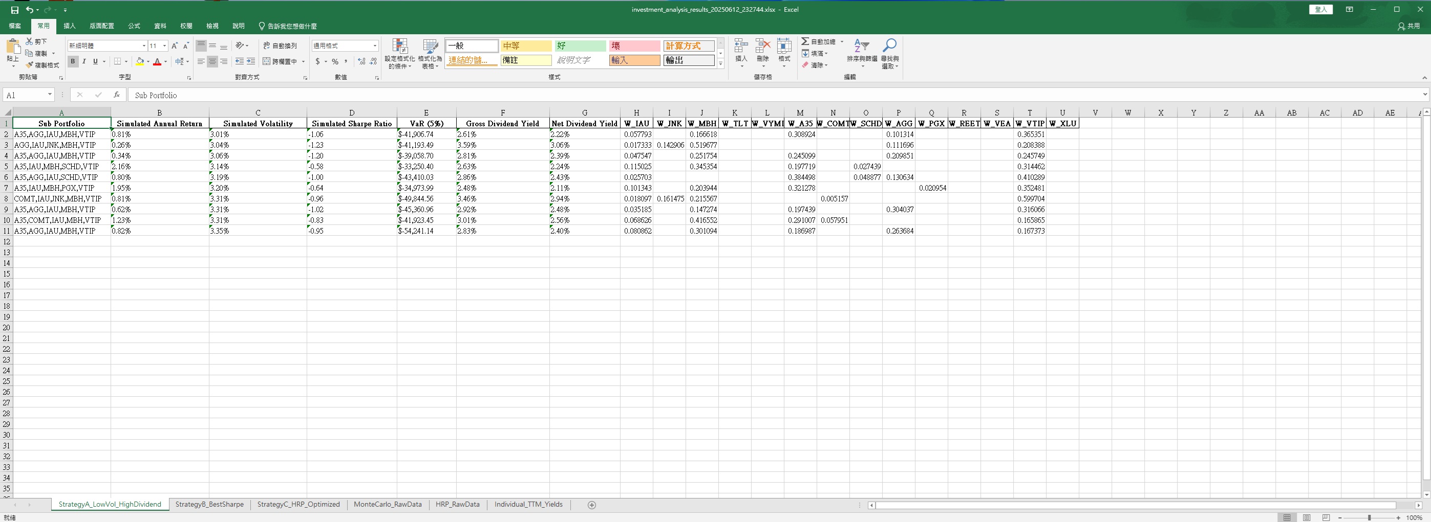 I found that no single tool could easily answer my core question: "If I choose 5 assets at a time from my personal pool of 20 global ETFs and stocks, what are their potential future performances and risks under various weighting schemes? And which combination best meets my criteria for 'low volatility' and 'high dividend yield'?"
